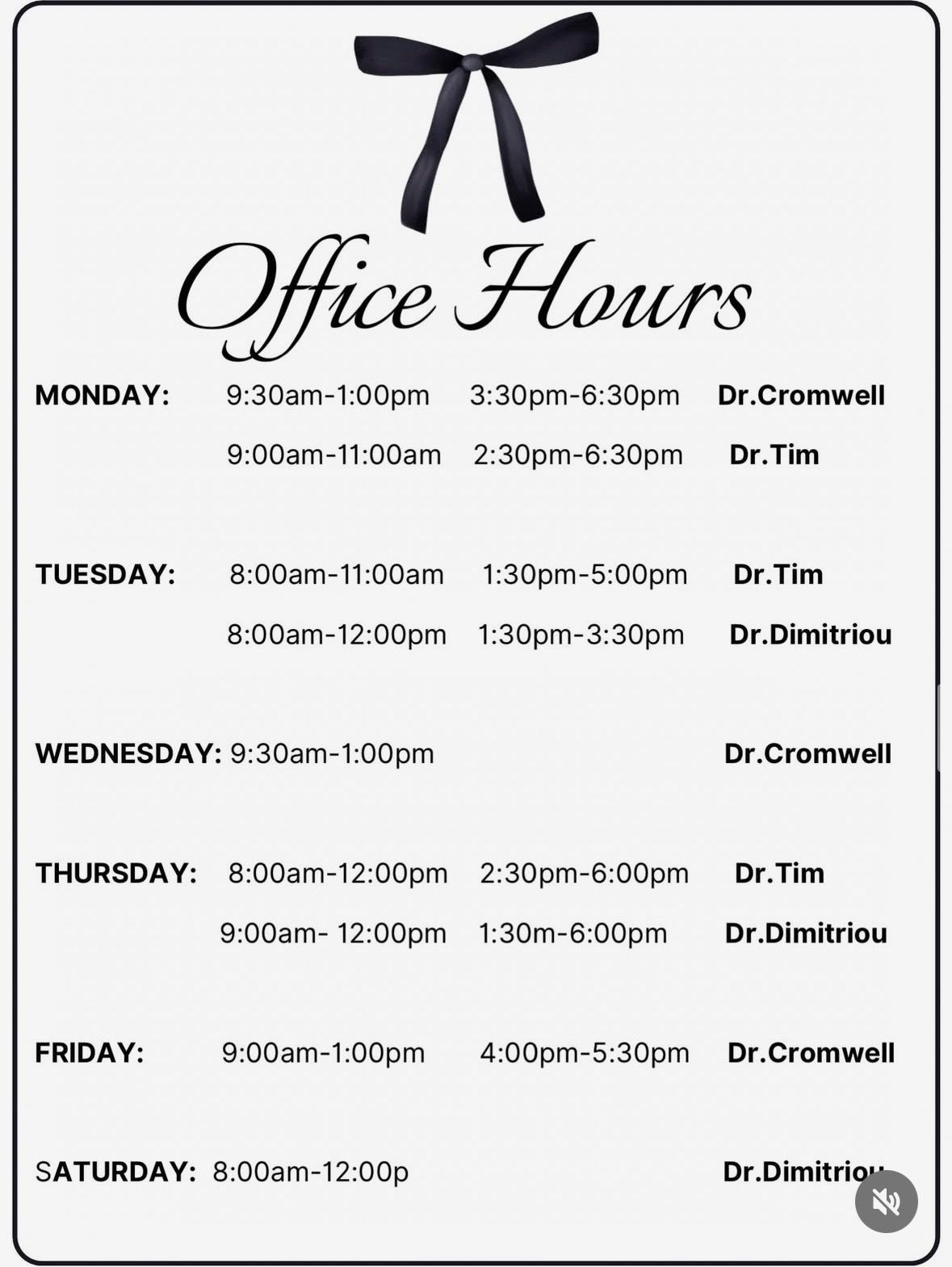 CROMWELL FAMILY CHIROPRACTIC OFFICE HOURS